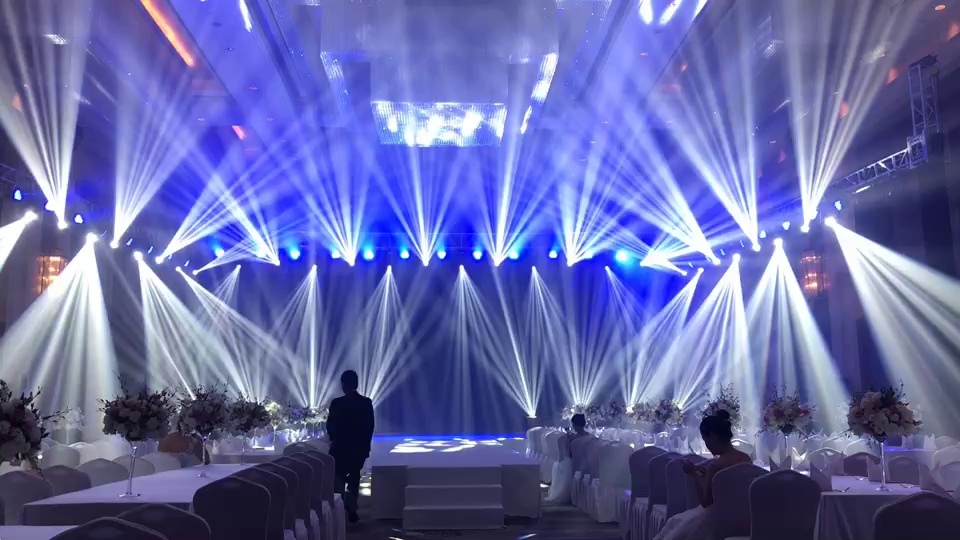 Purchased 380W mini beam lights, 500W LED BSW moving head lights, 54*3W RGBW PAR lights, LED blinders, etc.